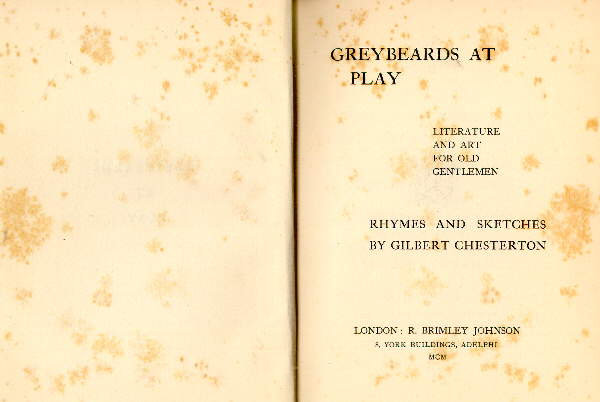 Greybeards at Play was Chesterton's first book.